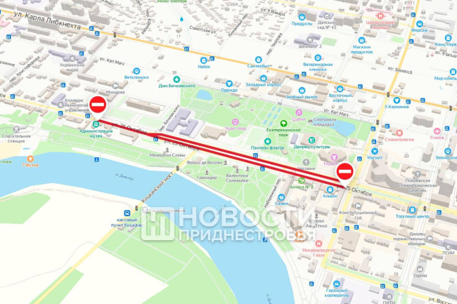 - на ул. 25 Октября: от ул. Луначарского до пер. Днестровского.