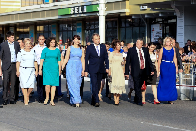 Тирасполь, 24 июня. /ИА «Новости Приднестровья»/. Сегодня в приднестровской столице чествовали выпускников этого года. На вечер под названием «Юность вступает в жизнь» пришли 765 ещё вчерашних 11-классников. Они традиционно прошли по главной улице города в колонне во главе с руководством города и республики. Всё это время звучали имена и фамилии наиболее отличившихся ребят – победителей республиканских предметных олимпиад, международных соревнований и медалистов. Последних, кстати, в этом году было 64: 54 – золотых и 10 – серебряных.