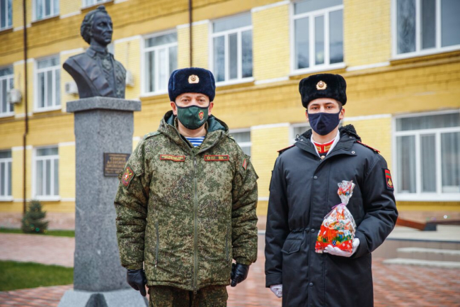 Из-за пандемии суворовцы учатся дистанционно. Тем приятнее было получить подарки из рук начальника ТСВУ подполковника Сергея Александрова.