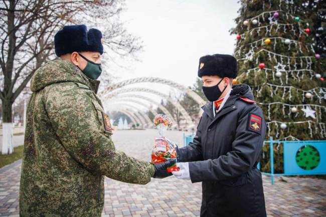 Напомним, что в канун Нового года сладкие подарки суворовцы получили также от Главнокомандующего Вооруженными силами ПМР Вадима Красносельского и министра обороны генерал-майора Олега Обручкова.