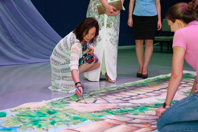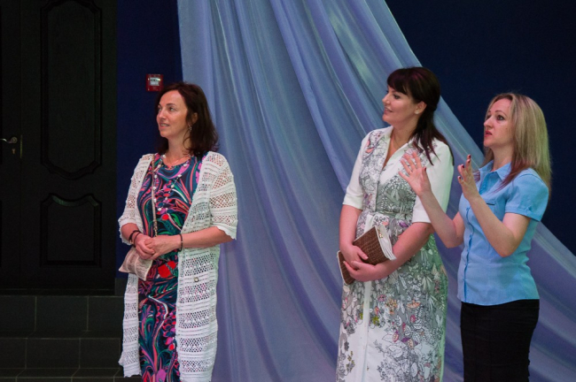 Для гостей провели экскурсию по учреждению, познакомили с творчеством и достижениями кружковцев, предложили даже поучаствовать в подготовке декораций к детскому спектаклю и в постановке к 70-летию Великой Победы.