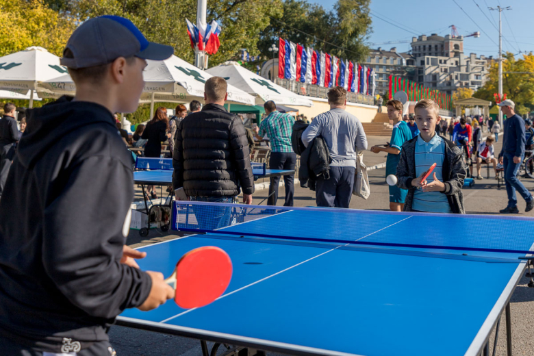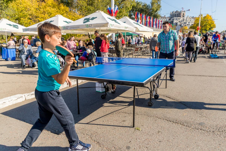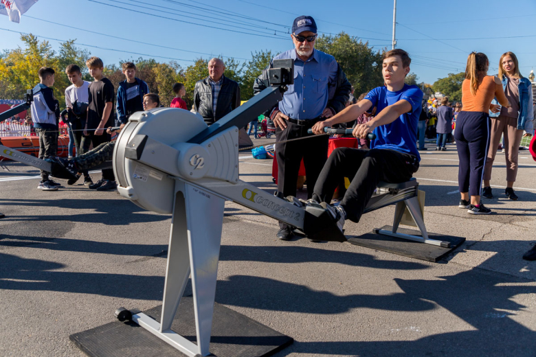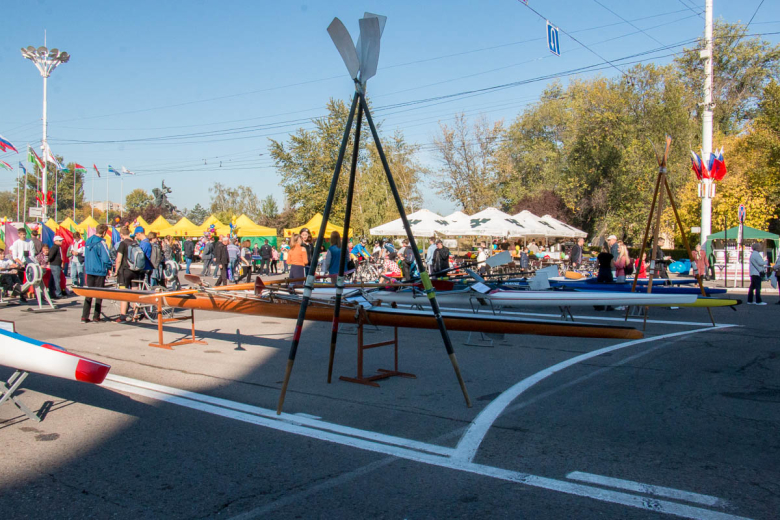 Ещё в центре города было большое количество спортивных площадок. Все желающие могли поиграть в шахматы, теннис, покататься на велотренажёрах, а также попробовать свои силы на концептах – тренажёрах для гребцов. Также столичная школа гребли на площади выставила свои лодки. Здесь были байдарки, академические лодки, каноэ.