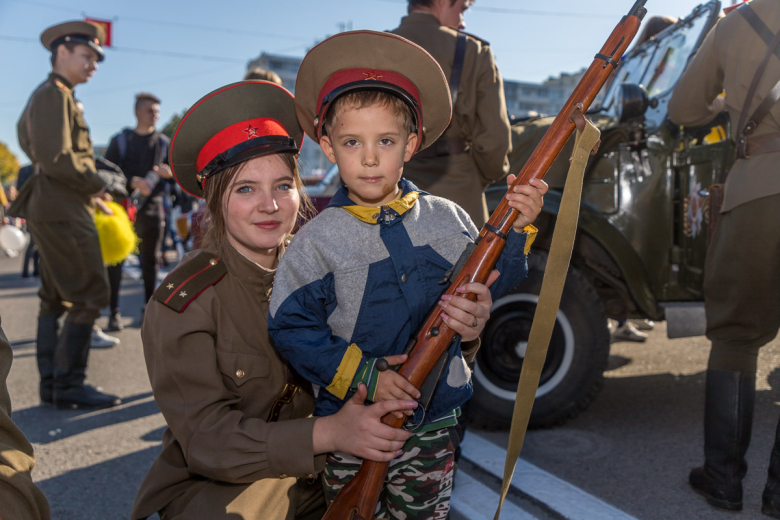 На главной площади столицы разместилась выставка ретро-автомобилей, мотоциклов и военной техники времён Великой Отечественной войны.