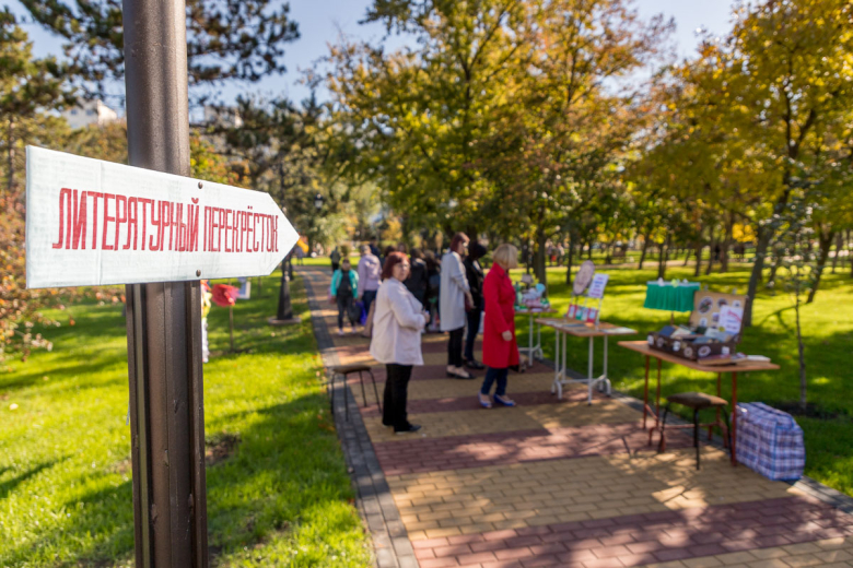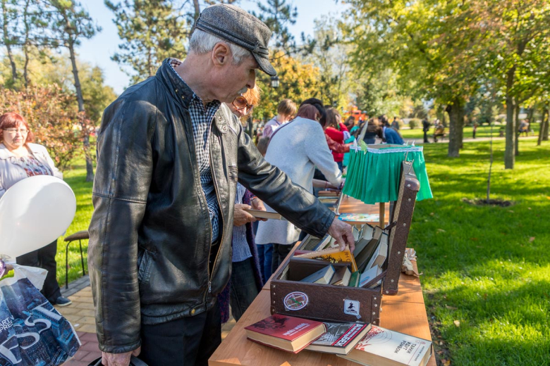 Прогуливаясь по скверу, можно было свернуть на литературный перекрёсток. Здесь Городская библиотека организовала выставку книг, фотозоны и мастер-классы для детей. Ребята своими руками делали закладки для книг, а также флажки Тирасполя и Приднестровья.