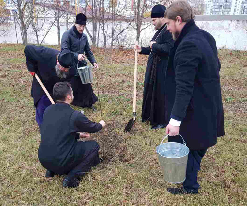 В продолжение дня духовенство епархии во главе с правящим Архиереем высадили саженцы деревьев и кустарников на территории вблизи Никольского храма в Тирасполе. Среди посаженных зеленых насаждений – березы и хвойные саженцы.