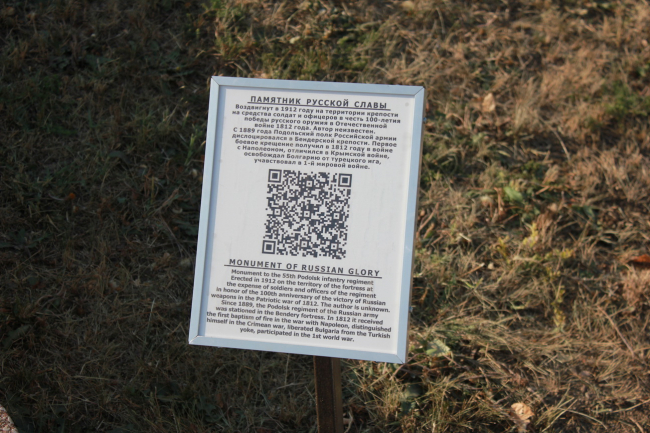 Бендеры, 5 сентября. /Новости Приднестровья/.  У одного из символов города Бендеры – памятника Русской Славы – появился первый туристический указатель с QR-кодом и краткой историей памятника на русском и английском языках. Считав QR-код с помощью мобильного телефона, можно будет получить подробную информацию о достопримечательности, сообщается на сайте местной госадминистрации.
