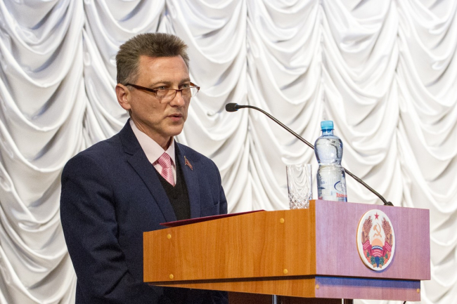 Министр юстиции ПМР Александр Шевченко зачитал приветственный адрес главы государства.