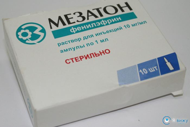 Мезатон производится Опытным заводом при Харьковском научном центре лекарственных средств. Препарат массово используется реаниматологами, анестезиологами и акушерами для местного и общего наркоза, особенно часто он применяется при травмах, ранениях, острой недостаточности кровообращения.