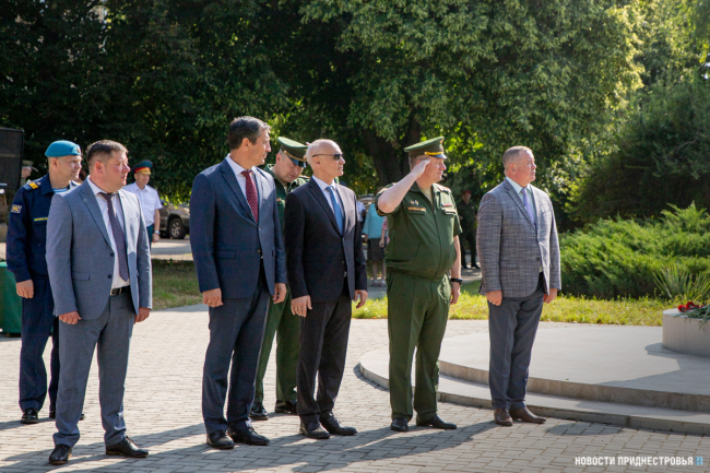 В церемонии возложения цветов приняли участие сопредседатели Объединённой контрольной комиссии (ОКК) от России Андрей Горобцов и Приднестровья Олег Беляков. Цветы к мемориалу также возложили глава бендерской госадминистрации Роман Иванченко и военнослужащие контингентов миротворческих сил от РФ и ПМР.