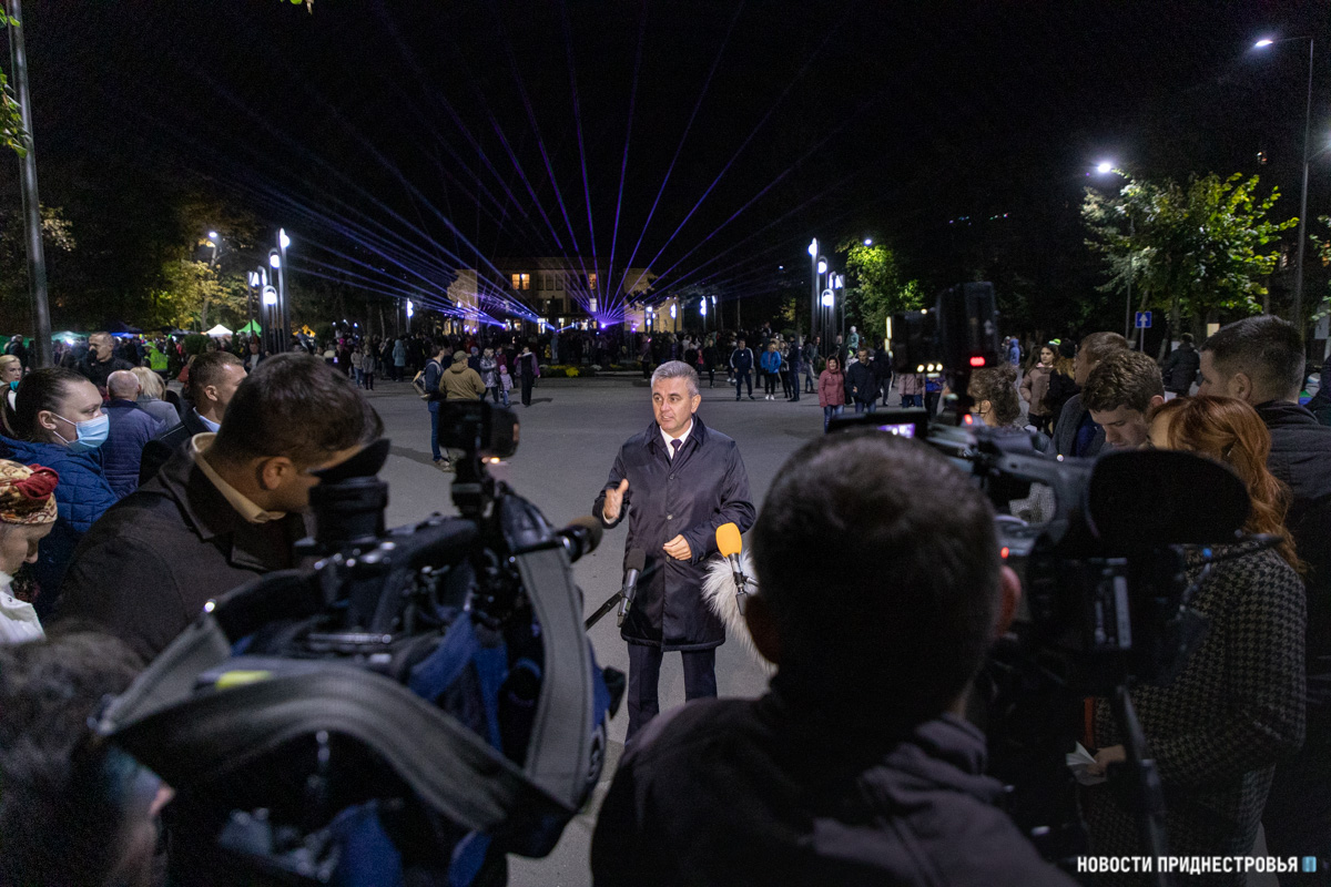 Глава государства отметил, что история Бендер богата событиями. Вадим Красносельский пожелал городу, чтобы новые главы его летописи были только о мире и процветании. В беседе с журналистами глава государства рассказал, каких ещё преобразований в городе стоит ждать бендерчанам.