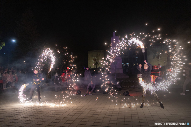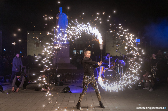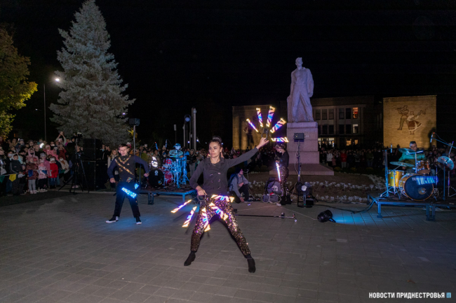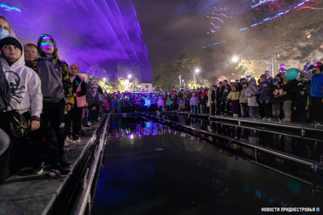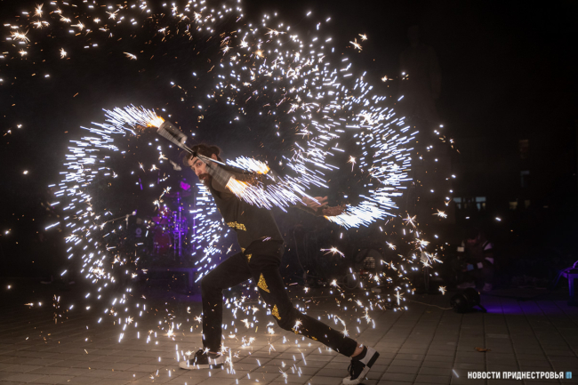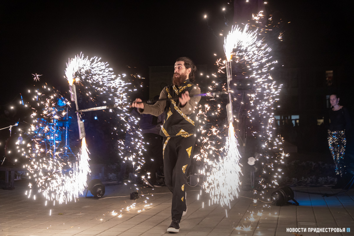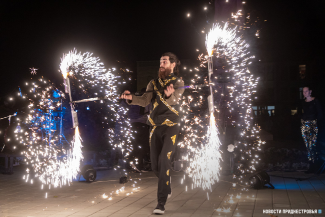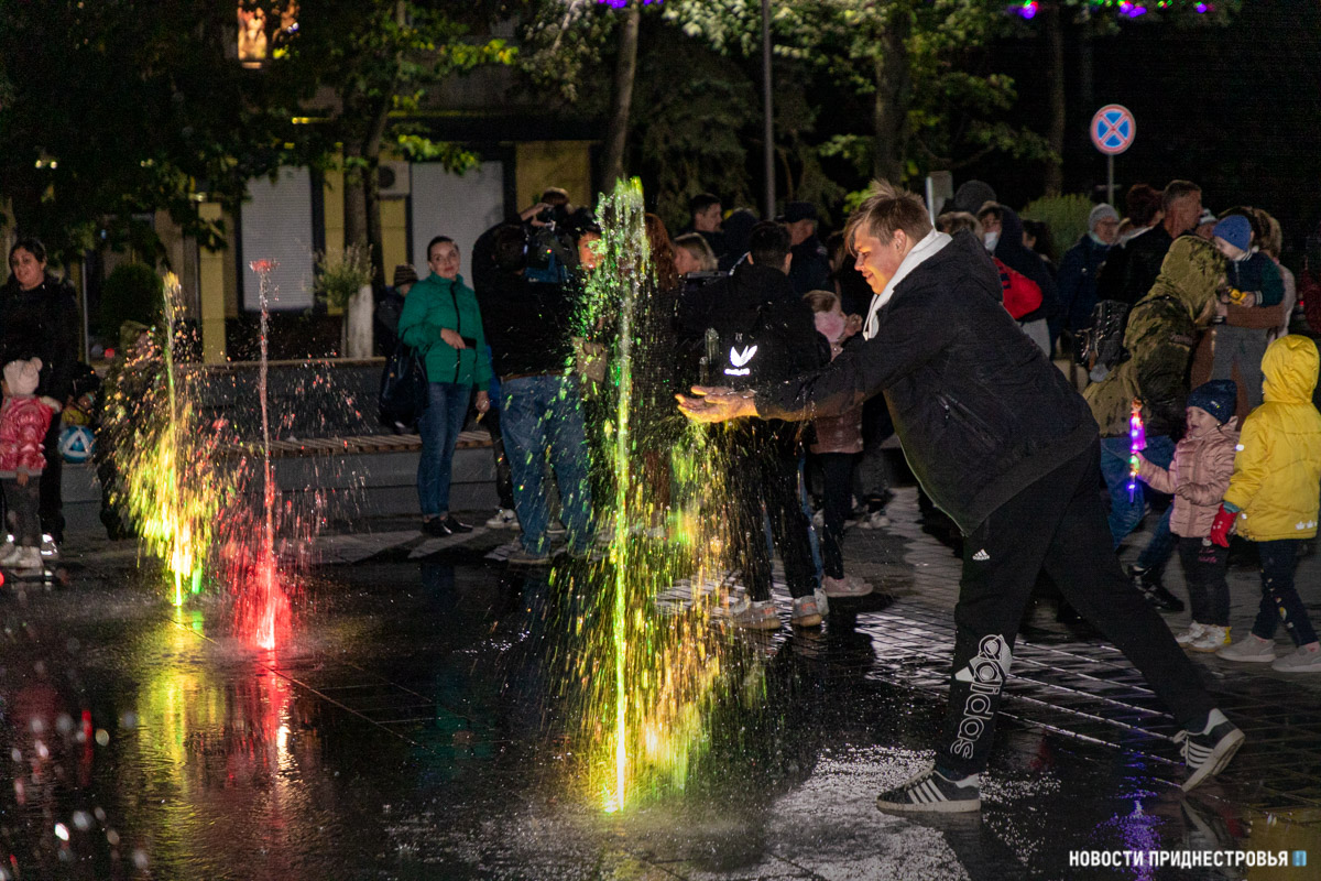Праздник продолжился световым и огненным шоу. Артисты выступили с завораживающей программой, которая пришлась по душе гостям праздника. Постепенно шоу перешло в запуск фонтанов. Судя по восторгу бендерчан, это однозначно стало самым ожидаемым событием вечера.