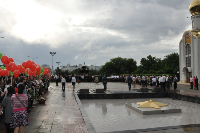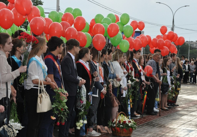 Память всех погибших в Дни Бендерской трагедии, умерших от ран защитников и мирных жителей Приднестровья, почтили Минутой молчания. Затем выпускники столичных школ выпустили в небо шары цветов приднестровского флага.