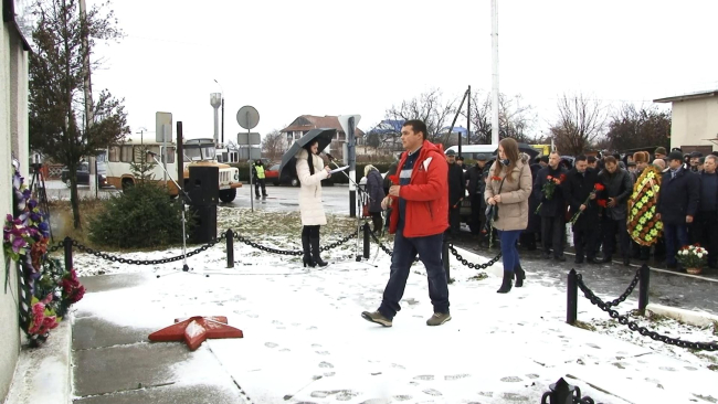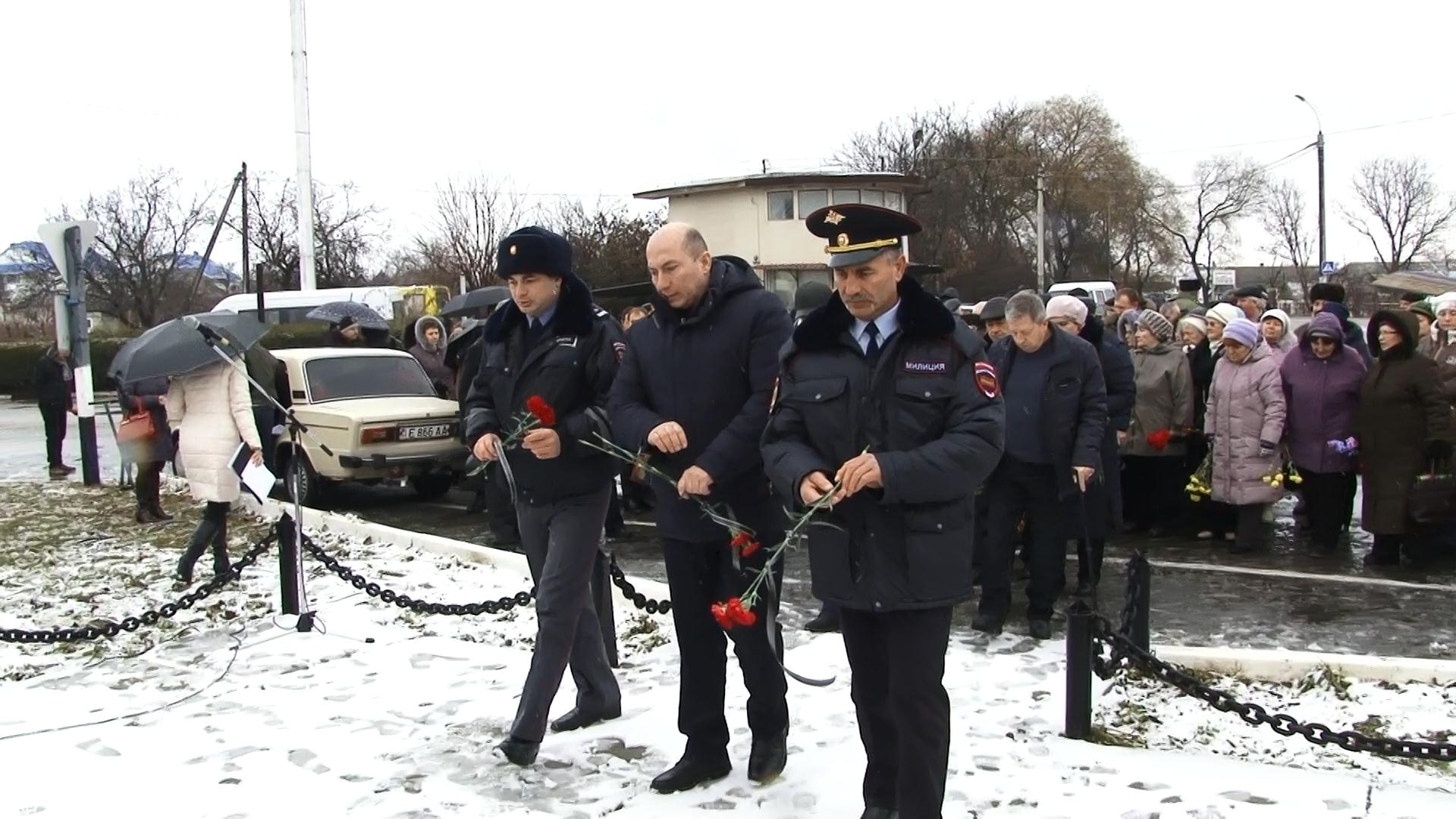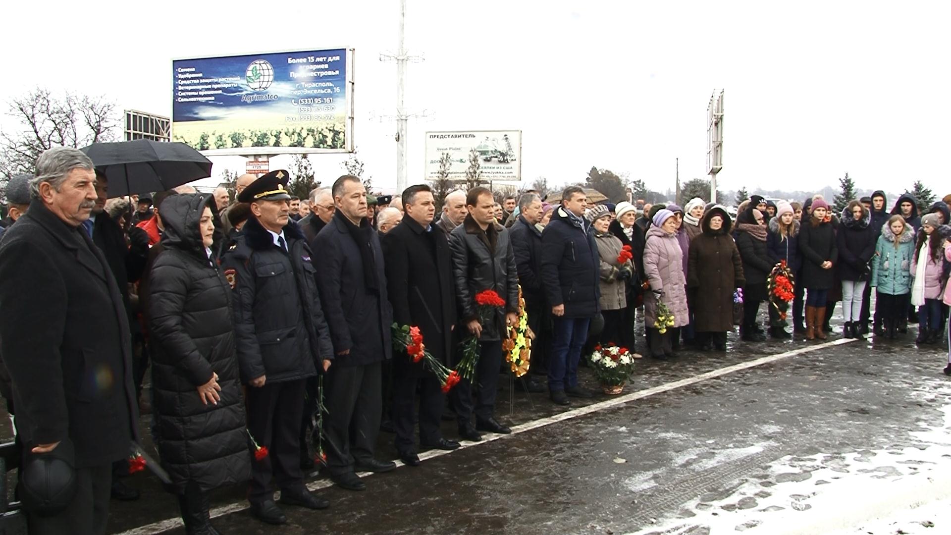 Собравшиеся почтили память погибших минутой молчания и возложили цветы к подножию стелы.
