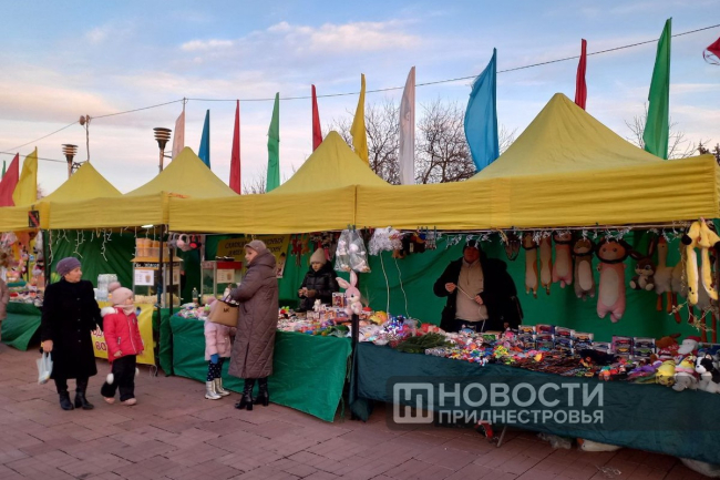 Их сопровождали жители города. Все вместе прибыли на главную площадь Дубоссар – площадь Победы, чтобы принять участие в зажжении огней на зелёной красавице. Рядом с ёлкой организовали праздничную торговлю.