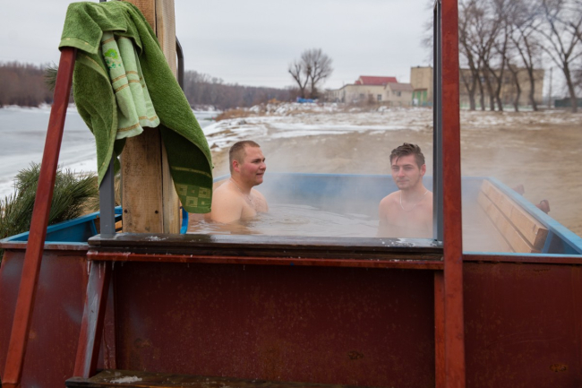 Все условия для этого были созданы ещё накануне: на пляже установлены 4 палатки, где можно переодеться, обогреться и выпить горячий чай. Также здесь со вчерашнего вечера дежурят бригады врачей, спасателей и милиционеров.