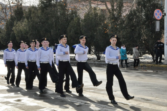 Затем по площади Победы парадом прошли юнармейцы муниципальных школ. Их поприветствовал и поздравил с праздником глава госадминистрации Василий Малай.