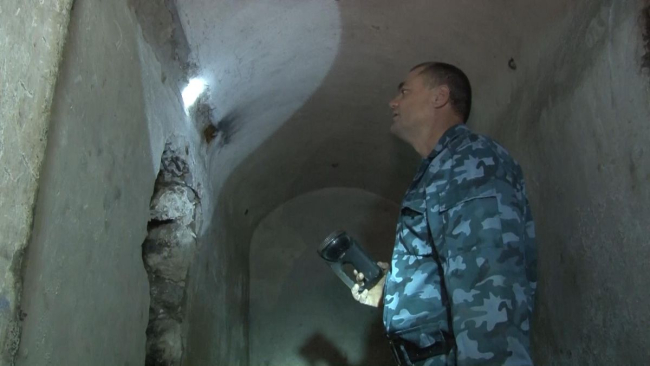 Вход в подземную часть ДОТа находится на глубине около семи метров. Его расчищали вручную и при помощи специальной техники. Взору открываются разветвлённые бетонные коридоры. Их общая протяженность около 300 метров, а высота достигает двух. Всего обнаружили 12 специальных помещений разного назначения.