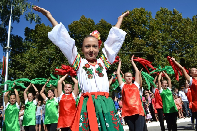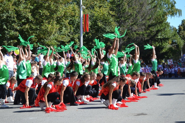 Центр города на несколько часов превратился в сцену оригинальной аллегории этнокультурного многообразия республики. Под энергичную молодежную музыку на главную улицу вбежали юноши и девушки в красных и зеленых туниках. Оседлав мелодичный ритм, молодежь объединилась в композицию масштабного танца, сплетая цвета приднестровского флага в движущийся красочный узор. В какой-то момент красно-зеленые танцоры образовали круг, куда мгновенно проникли мальчики и девочки в национальных одеждах Приднестровья.