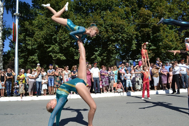 У зрителей создавалось впечатление, будто бы флаг республики обрамляет и защищает многогранную культуру необычного, но гармоничного этнического сплава. Русские, молдавские, украинские и болгарские танцы сменяли друг друга в великолепном фольклорном представлении, который завершился символическим выходом на импровизированную сцену молодого поколения. Ребята перехватили энергию танца, и создали из движения и ритма интересный шоу-балет, постепенно переросший в художественную гимнастику. Атлеты и гимнасты продемонстрировали виртуозное владение телом, украшая пространство сложнейшими спортивными фигурами, что стало кульминацией театрализованного представления.
