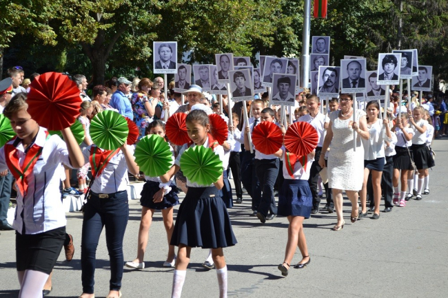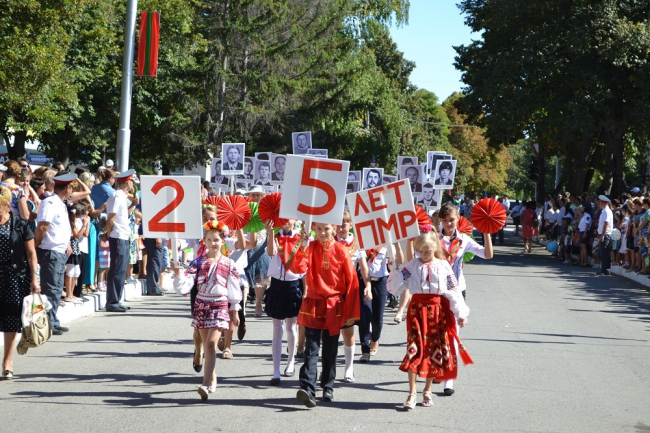 Эпилогом красочного шоу стало шествие колон. Юные патриоты, бессмертный полк, работники учреждений — все они стали участниками гражданского парада в честь дня рождения Приднестровья.