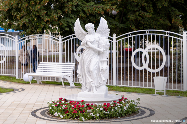 Строительство парка Молодожёнов начали ранней весной этого года. В нём есть разные тематические фотозоны: входная арка в виде сердец, античные статуи, пруд с мостиком, кованая карета, мраморная ротонда и другие архитектурные элементы. Объект выполнен за счёт программы Фонда капвложений, на его строительство потратили 2,5 млн рублей. В госадминистрации рассказали, что в ближайший месяц парк будет работать с 8:00 до 17:00.