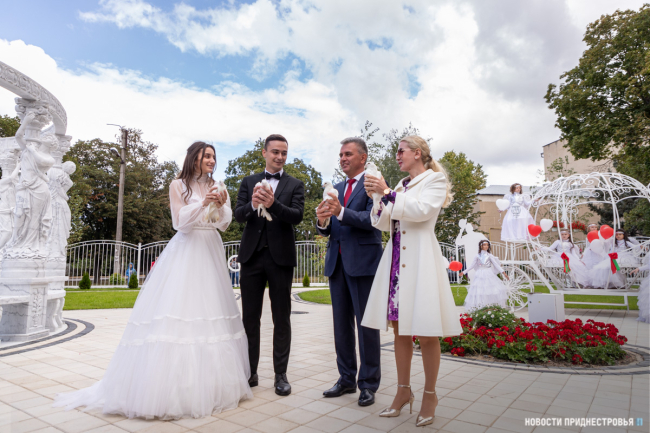 Слободзея, 2 сентября. /Новости Приднестровья/. В Слободзее открыли парк Молодожёнов. В торжественной церемонии приняли участие Президент ПМР Вадим Красносельский и его супруга Светлана. Первыми молодожёнами, которые посетили новый парк, стали Юлия и Григорий Калинины. Супруги Красносельские обратились к молодой паре с напутственным словом.