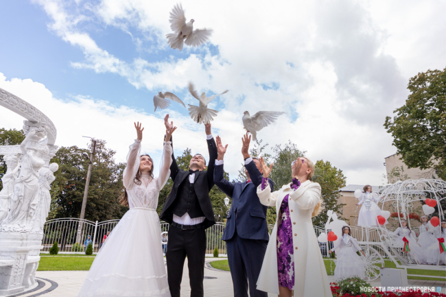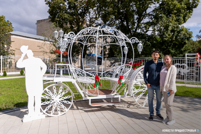 Посмотреть на новый парк пришли многие жители Слободзеи. Среди них – Алла и Дмитрий Продановы. Пара вместе уже почти 10 лет, поженились они три года назад. Праздничная фотосессия у супругов была в Чобручах, в парке им. Д.К. Родина. Говорят: в день своей свадьбы с удовольствием сфотографировались бы в таком парке Молодожёнов, который открылся сегодня.