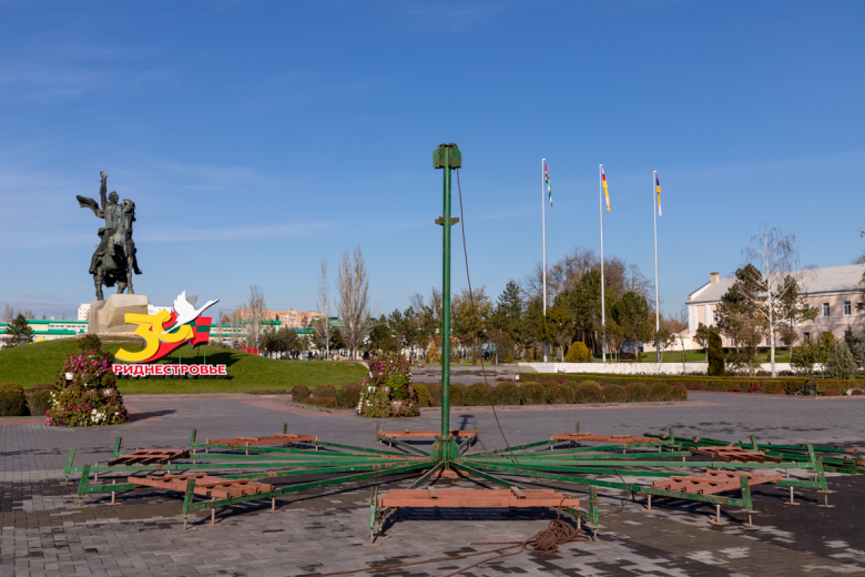 Как сообщается на сайте столичной госадминистрации, теперь 26-метровая конструкция будет украшать главную площадь Тирасполя не в сквере де Волана, а напротив памятника Суворову (то есть с противоположной стороны).