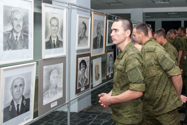На выставку пришли военнослужащие ОГРВ, а также простые граждане, интересующиеся творчеством художника.