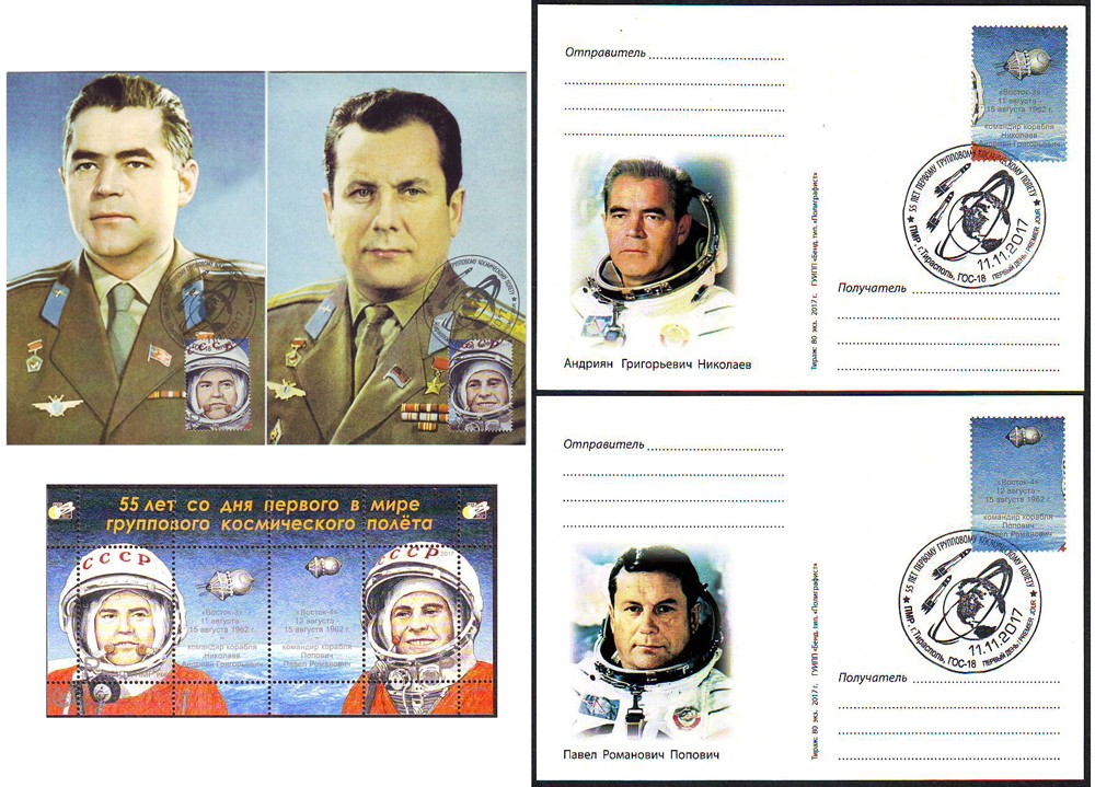 Серия тиражом 1 600 экземпляров посвящена 55-летию со дня первого в мире группового космического полёта