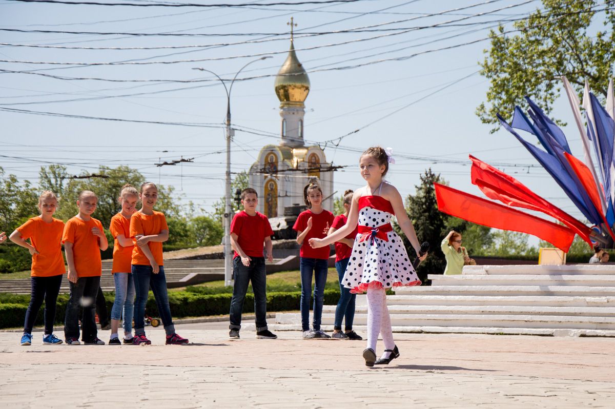 Так, уже на подходе к центру горожан и гостей столицы зазывала громкая музыка, звучащая у ДДЮТ. Силами Управления народного образования Тирасполя и Дворца детского-юношеского творчества здесь была организована концертная программа местных детских творческих коллективов.