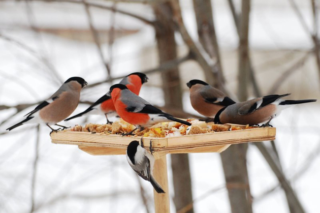 Это делается, чтобы в условиях снегов и морозов поддержать диких птиц, которые не могут найти себе корм.