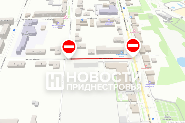 Тирасполь, 10 апреля. /Новости Приднестровья/. Дорога по переулку Христофорова в Тирасполе от улицы Покровской до улицы Пушкина полностью перекрыта с 9 до 16 апреля.
