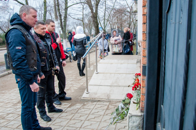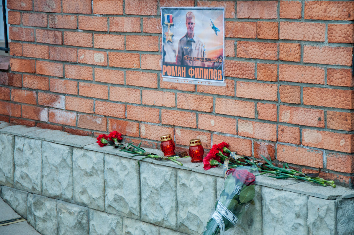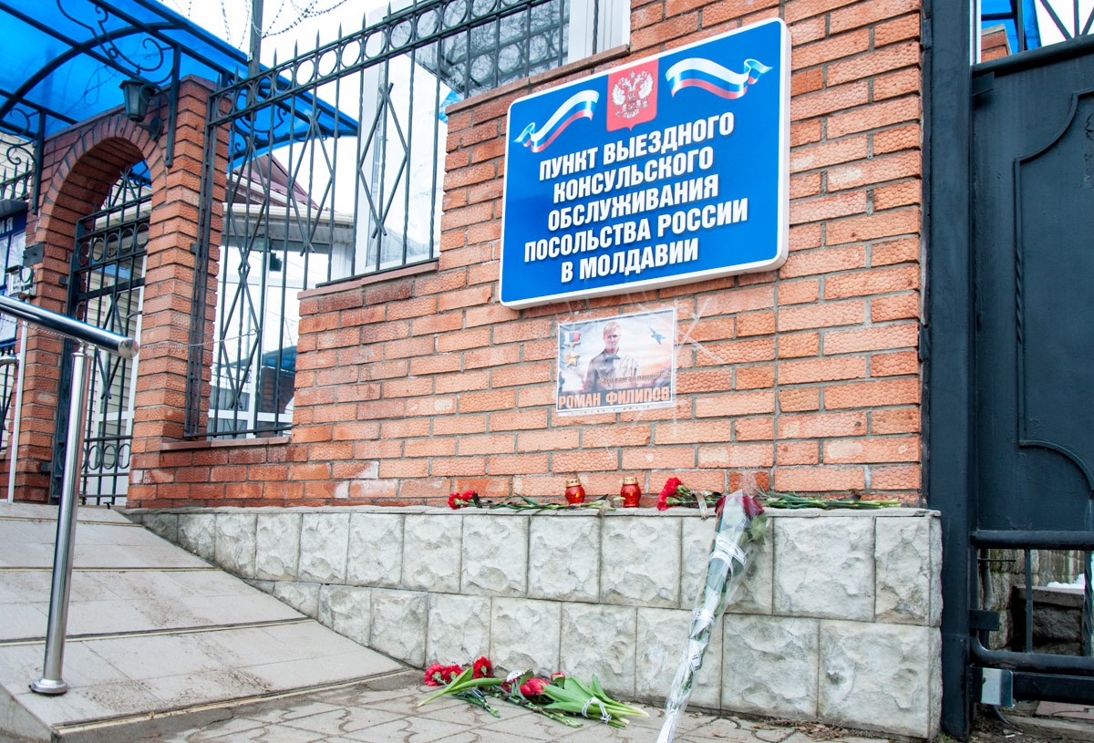 Тирасполь, 7 февраля. /Новости Приднестровья/. В память о погибшем в Сирии российском летчике Романе Филипове активисты движения «Сорок сороков», представители отделения «Ночные волки Приднестровья», а также военные в отставке зажгли свечи и возложили цветы к зданию российского консульского пункта в Тирасполе.
