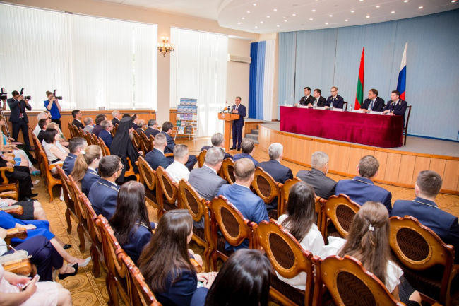 «Сегодня весьма непростая ситуация. Мы пережили многое — и боевые действия, и блокады, и кризис дипломатических отношений, переговорного процесса. Но многие, понимая, что нельзя решить так называемую „приднестровскую проблему“ силовым путем, переходят к другому направлению — дипломатического давления, обмана. И, конечно, основная нагрузка ложится на вас — на работниках дипломатической службы. Вы на острие борьбы, вы отстаиваете интересы Приднестровья во внешнем периметре нашего государства. Вам непросто, а где-то и неприятно общаться, обмениваться, доказывать, но это ваша работа», — обратился к сотрудникам внешнеполитического ведомства Вадим Красносельский.