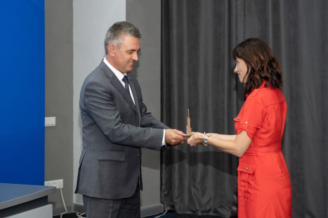 От имени воспитанников построенного с нуля современного многофункционального центра, их родителей, а также всех, кто прошел в этом учреждении реабилитационный курс, Светлана Завтур вручила Вадиму Красносельскому талисман центра «#МЕЧТЫ СБЫВАЮТСЯ».