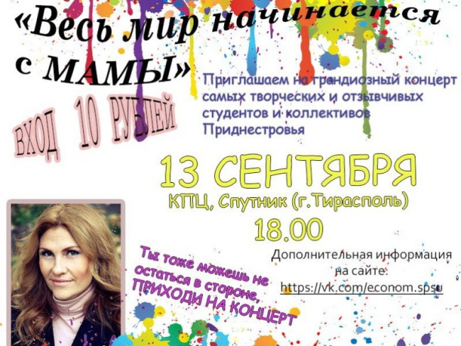 «Весь мир начинается с мамы». В Тирасполе пройдёт благотворительный концерт