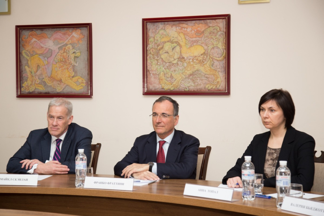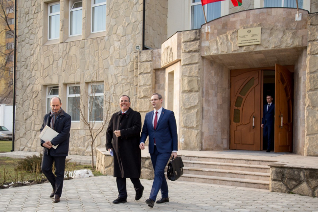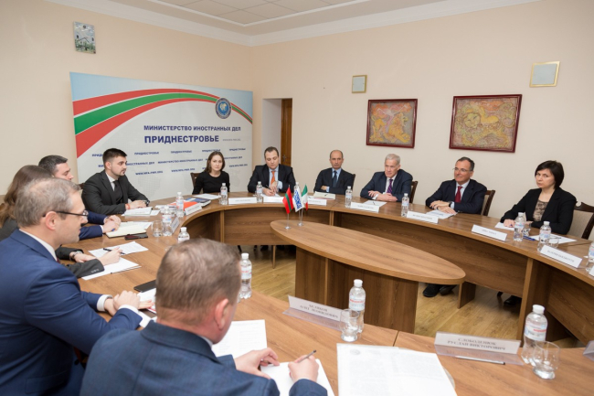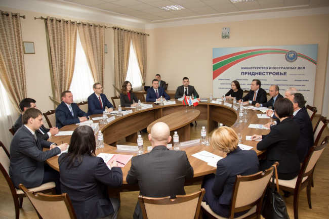 Тирасполь, 27 марта. /Новости Приднестровья/. Делегация ОБСЕ во главе со Спецпредставителем действующего Председателя ОБСЕ Франко Фраттини после встречи с главой государства прибыла в МИД ПМР. С министром иностранных дел ПМР Виталием Игнатьевым итальянский дипломат обсудил текущую ситуацию в переговорном процессе. В центре внимания собеседников - вопросы участия приднестровского автотранспорта в международном движении, прекращение политически мотивированных уголовных дел, свобода передвижения, вопросы межбанковского взаимодействия и механизма гарантий имплементации решений в рамках переговорного процесса.