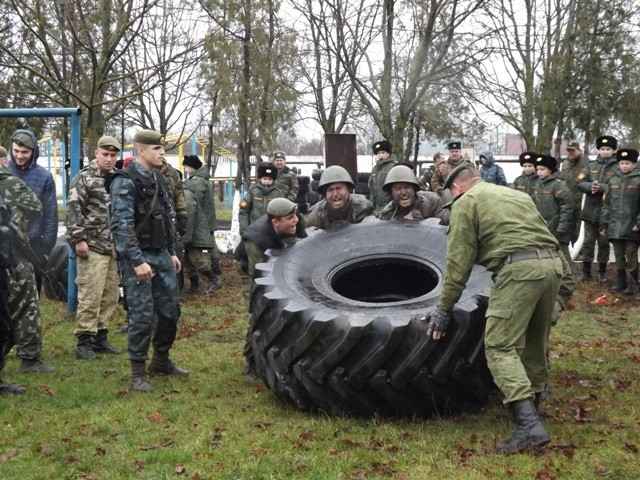 Вернувшись на территорию части, военнослужащие прошли огненно-штурмовую полосу. Заключительным этапом стал силовой экстрим: перекидывание тракторных покрышек и спарринги.