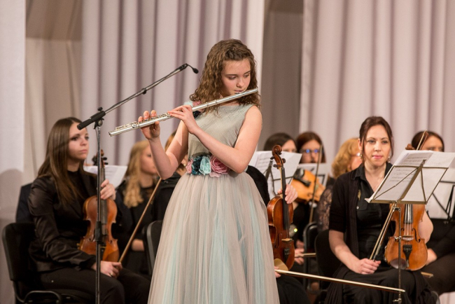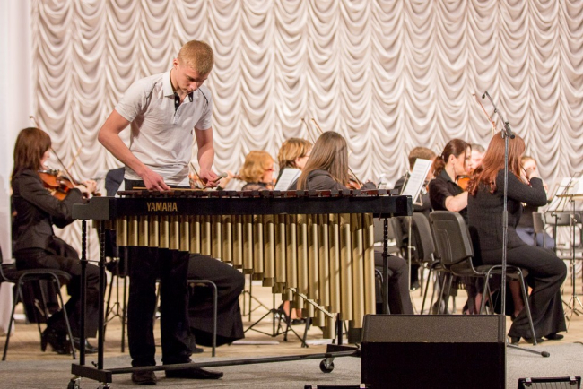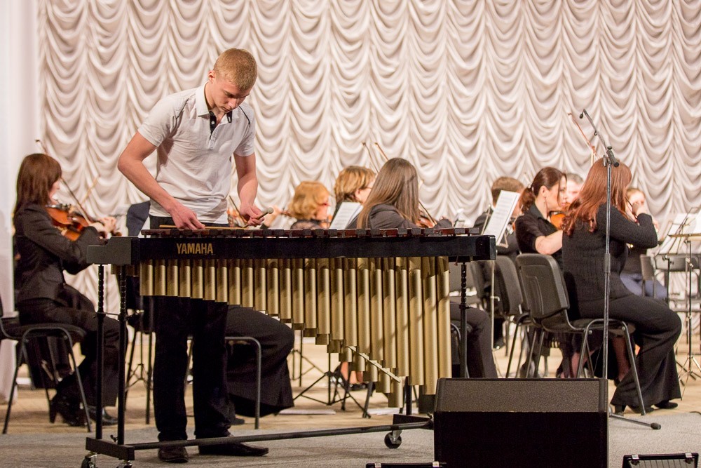Мальчики и девочки – флейтисты, скрипачи и пианисты исполнили классические и современные произведения. В одном из номеров юный музыкант сыграл на маримбафоне. Этот ударный музыкальный инструмент родственник ксилофона, но больших размеров. На маримбе играют специальными палочками. По словам Григория Мосейко, этот инструмент редко используется симфоническим оркестром в концертах.