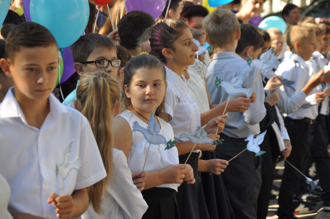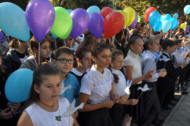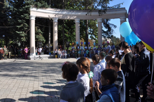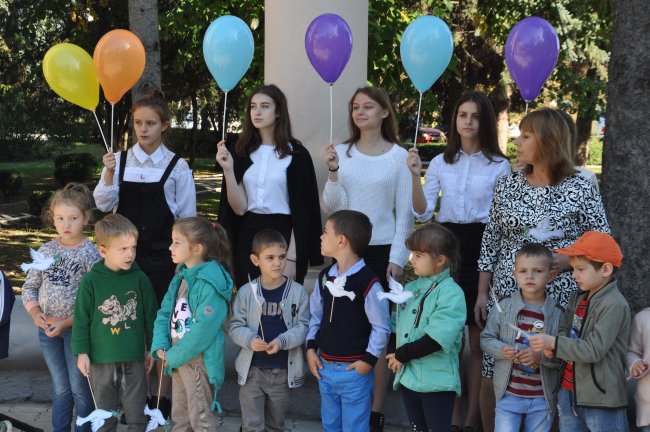 Сегодня школьники и горожане по традиции собрались у арки Мемориала Славы с яркими шарами, и главным символом мира - бумажными голубями, сообщает пресс-служба местной госадминистрации.