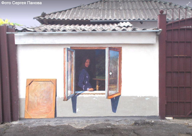 «Приднестровский государственный художественный музей предложил нам сделать граффити. Но я противник подобных изображений, которые можно увидеть на заборах. Задумался о том, чтобы сделать действительно качественную, классическую художественную роспись. Идея изображения пришла, когда я проходил мимо окна творческой мастерской колледжа, в котором увидел, как работает одна из наших студенток. Она и изображена в окне. Обдумал тонкости работы, и мы приступили к росписи. Выполняли ее акриловыми красками. На все ушло три дня. По окончании увидели, что с поставленной задачей мы справились. Для нас это был очень полезный опыт», - рассказал Сергей Панов.