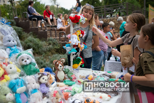 Само мероприятие было разделено на три части. Основная концертная программа – на первом ярусе сквера. На втором уровне расположились мастер-классы по декоративно-прикладному творчеству. А для детей и их родителей, увлечённых спортом, был отведён третий уровень со спортивной площадкой.
