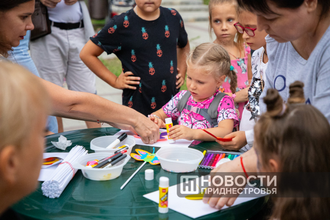 А для тех, кто утомился от энергичных танцев, неподалеку разместились локации с мастер-классами. За их проведение отвечали мастерицы и педагоги бендерского ДДЮТ. Самостоятельное изготовление украшений, книжных закладок, роспись воздушных шаров, познавательный кроссворд и викторина – дети с радостью выбирали себе занятие по душе.