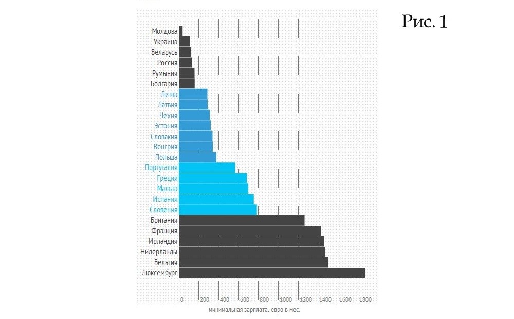 Об этом пишет украинский ресурс «Финансы», основываясь на свежих данных «Eurostat» о минимальной зарплате в странах Европы.(Рисунок 1)