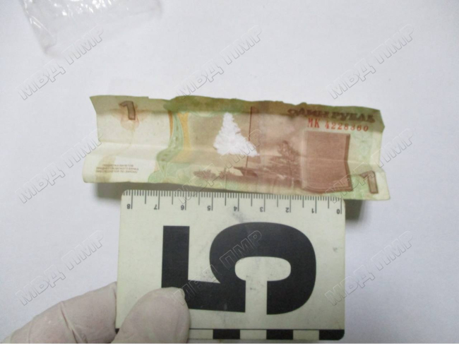 Как сообщил пресс-центр МВД ПМР, при личном досмотре у задержанного был обнаружен спрятанный в носке свёрток из рублёвой купюры с белым порошком.