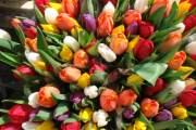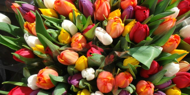 Молодые люди с самого утра раздавали на улицах столицы девушкам и женщинам подарки: тюльпаны и поздравительные открытки