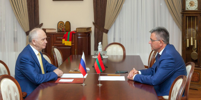 Вадим Красносельский и Фарит Мухаметшин говорили об успешной реализации совместных наработок, связанных с усовершенствованием работы выездного пункта консульского обслуживания в Тирасполе