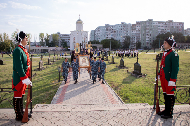The 55th Podolsky Infantry Regiment was formed 221 years ago on the shores of the Gulf of Finland; It received baptism of fire in the Russian-Swedish war during the siege and capture of the Loviz fortress. The soldiers distinguished themselves in wars with the Swedes, French, Turks, and Japanese, and participated in significant battles of the First World War. Podoltsy were stationed in Bendery three times, which is why it is here that they celebrate the regimental holiday. The leadership of the republic and the city, Russian guests, military personnel, clergy, and the public take part in it. The official part of the celebrations took place on the territory of the Military Historical Memorial Complex. Soldiers and officers of numerous regiments of the Russian imperial army, including the 55th Podolsky, are buried here. The Archbishop of Tiraspol and Dubossary Sawa serviced at the chapel of the image of the Savior Not Made by Hands in memory of the fallen soldiers.