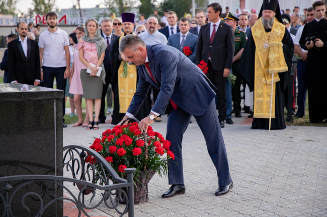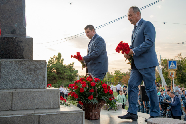 Opening the official part of the solemn event, the PMR President Vadim Krasnoselsky noted that by honoring Podolsky today, Pridnestrovians pay tribute to the Russian Warrior, in historical sense. They are talking about a soldier of the imperial army, a Soviet soldier who liberated many nations from the Nazi plague, the defender of Pridnestrovie and the current peacekeeper. All of them are descendants of the heroic foot soldiers of the 55th Podolsky regiment, Vadim Krasnoselsky said. “Today we honor the Defenders of the Fatherland, those who to this day commit their military feat,” the President emphasized. The President focused on the careful and respectful attitude of Pridnestrovians towards history, noting that due to preserving memory and preventing falsification of history, the Pridnestrovian people have the right to the future. “We have something to pass on to our descendants. We show everyone that we must not forget the past, how to protect history”, said Vadim Krasnoselsky.